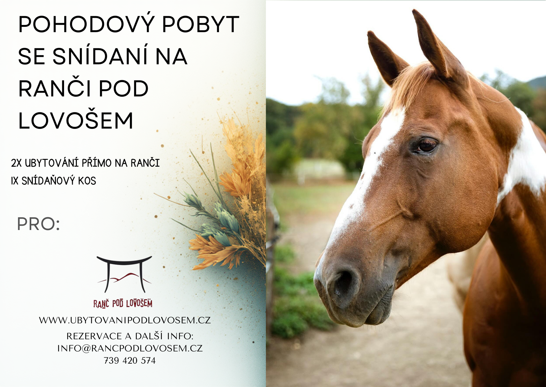 Rezervace a více informací: Napište nám na email: info@rancpodlovosem.cz!